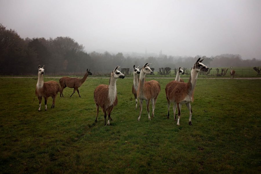 Upon arrival at the gate on a very misty, Saturday afternoon, I called Heidi asking for directions to our meeting point. Having caught the family on their way out for an evening walk, I was promptly directed to “drive past the house, past the hangar and park near the llamas”. I giggled to myself.